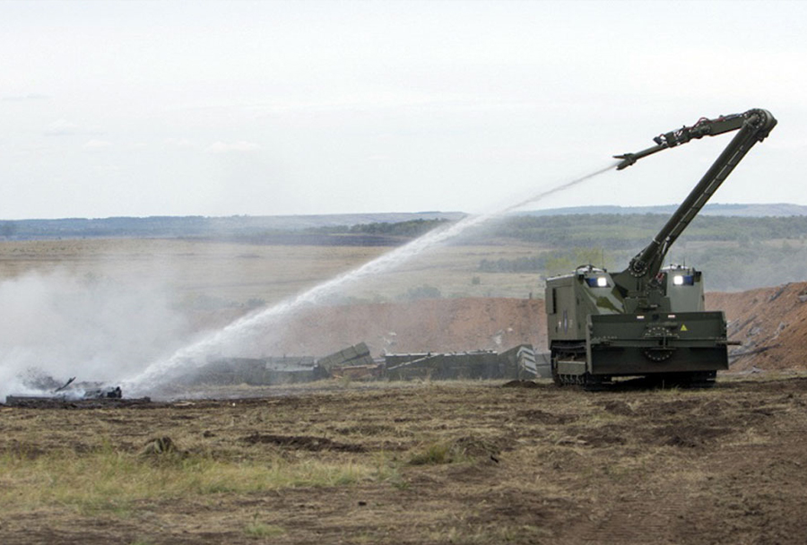 Ruski deminerji v Siriji, ki so jih napotili v pred dvema tednoma osvobojeno sirsko antično mesto Palmira, so opremljeni z najnovejšima ruskima vojaškima robotskima sistemoma uran 6 in uran 14, samovoznimi reakcijskimi napravami za razminiranje UR-77 “zmaj gorinič”, napravami za iskanje eksplozivov IMPS-2 in koršun ter zaščitnimi oblekami OVR-2 soko.